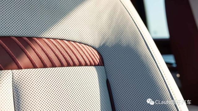内饰部分,选择皮革混搭方式,前排座椅选择 Cashmere Grey 颜色,为了让家人和珍珠联系起来,后排座椅都是用的。 Ardent Red 色彩,灵感来源于用来展示珍珠的材料色彩。