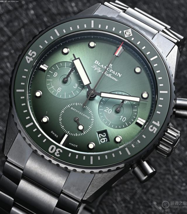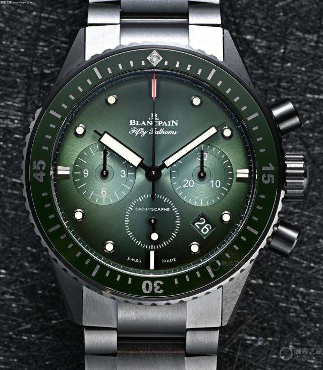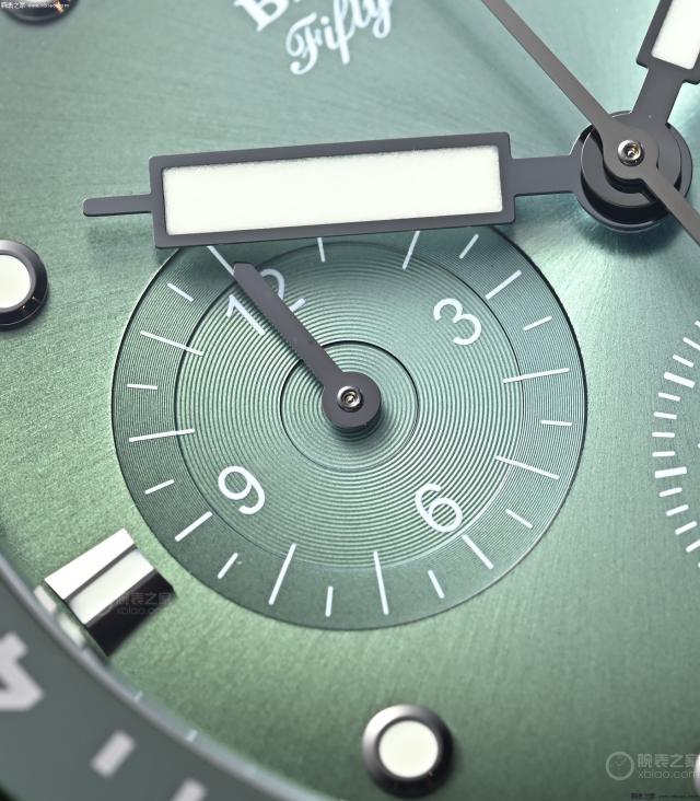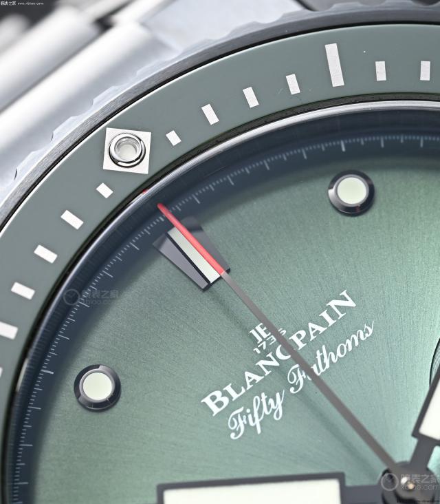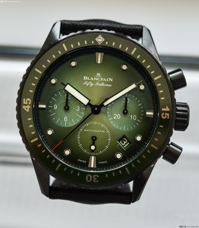 宝珀 50 深潜器记时“极光绿”,绿盘水平非常高。