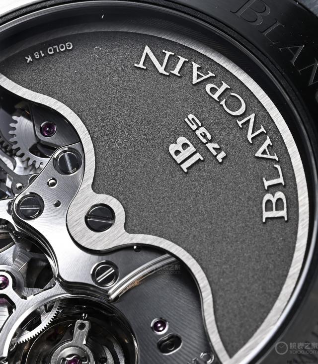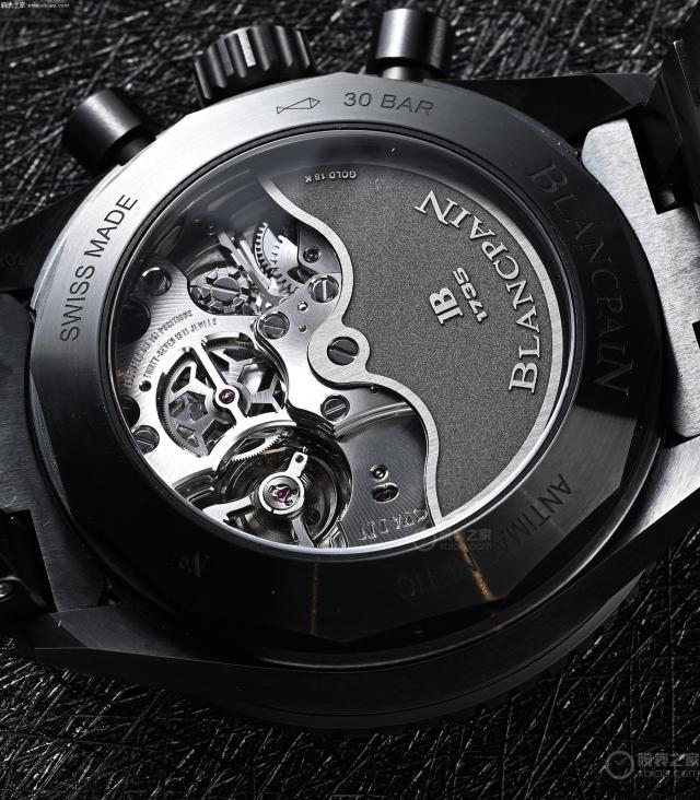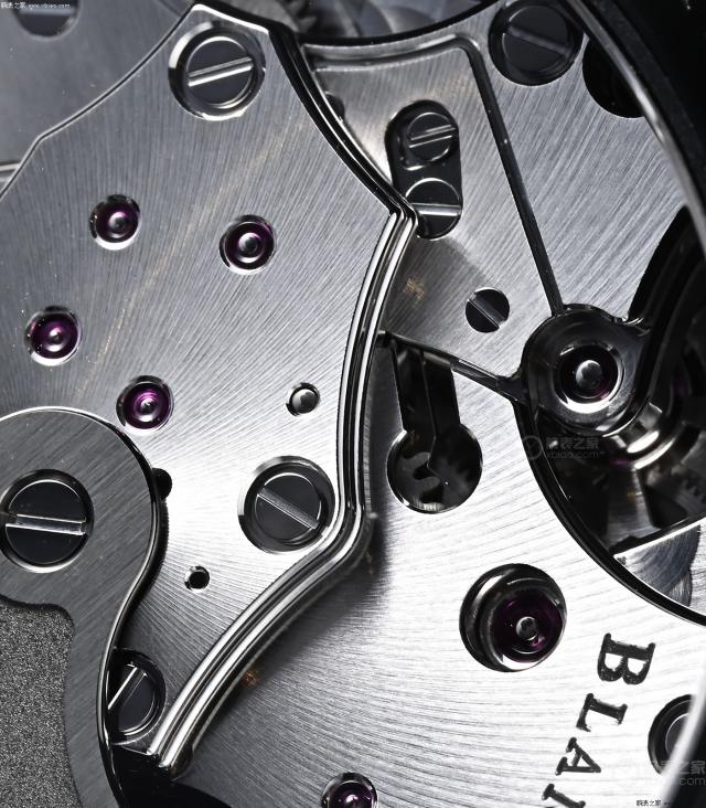 宝珀 F385 机芯自动计时,摆陀旁,镂空部分,是机芯的秒轮。