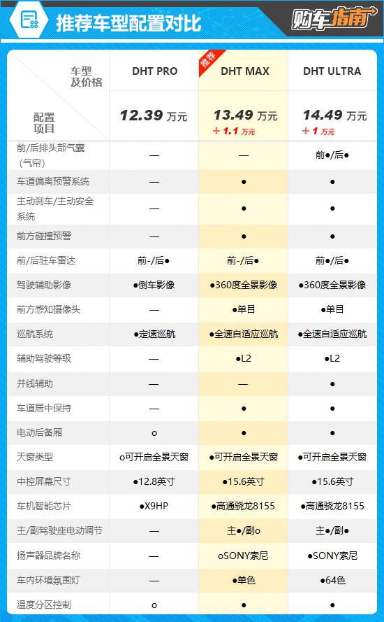 总而言之,价格是 13.49 万元的 DHT MAX 性价比最高,消费者在购买时可优先考虑。