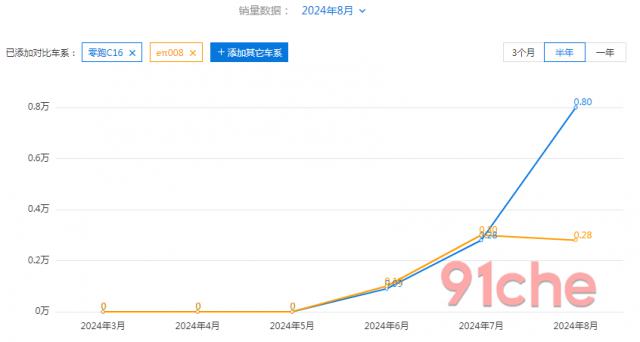 有趣的是,e π 008 与零跑 C16 都是在今年 6 每月上市,但是前者每月的销售额正在上市。 3000 车辆上下徘徊,零跑 C16 月度销售额有所突破 8000 车辆,差距明显。此外,e π 008 售价已经出现 2.5 一万多元下降,两款车具体价格差不多,但消费者更喜欢零跑。 C16。