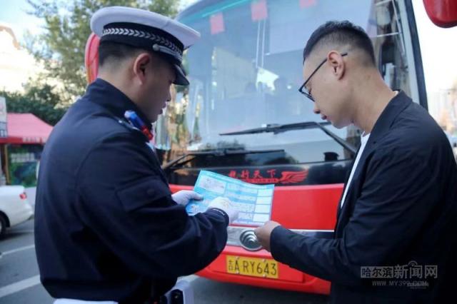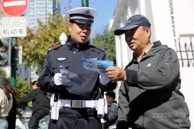 28 日 10 时 30 交警道路上的大队民警在尚志大街西五道街交叉口劝说了浙江车牌车辆误进公交专用道。经询问,是司机对路况不熟悉,没有及时注意交通标志造成的。随后交警向司机介绍了柔性执法政策,并发放了热门景点的停车传单,方便他们更快地找到停车区。司机说,这一政策不仅让外国游客免除了顾虑,而且还感受到了哈尔滨的包容和人文关怀,对交管部门大加赞赏!