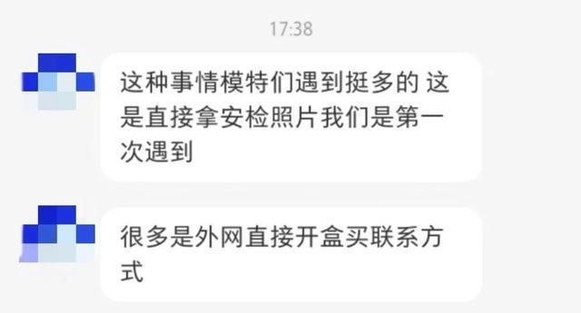 记者了解到,泄露个人信息的女性是外国模特。“模特们遇到了很多这样的事情(想要性骚扰),但这是我们第一次直接在机场拍安检照片(来找人)。(以前一般)很多都是外网直接打开盒子买联系方式。”