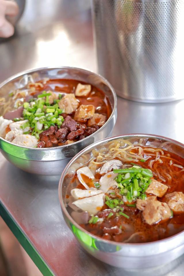 肠旺面:肥肠软糯,血嫩滑,手工面酥脆。
