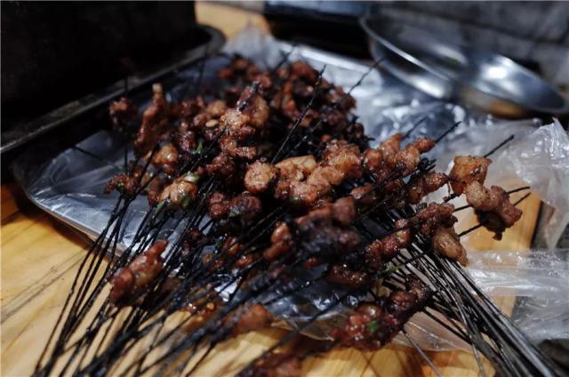 铁签烧烤:沁人心脾的炭香,浓浓的肉香,配上有折耳根的沾水就是老贵阳烧烤。