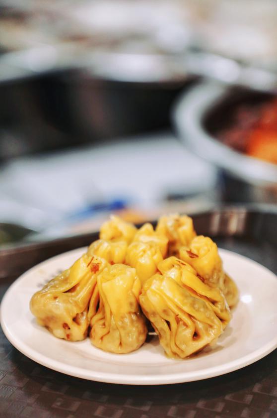 刷头:蒸好的“刷头”比拇指略大,看起来淡黄油亮。咬下去皮薄馅多,好吃又好吃,最好的搭配就是一碗特色沾水。