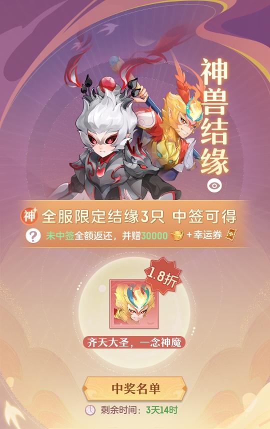 灵兽降妖·全民狂欢:新服连续七天开启神兽岛,获得幻梦葫芦完成指定任务,每个人都有机会得到孙悟空,也许下一个角落遇到爱的御灵师,就是你!