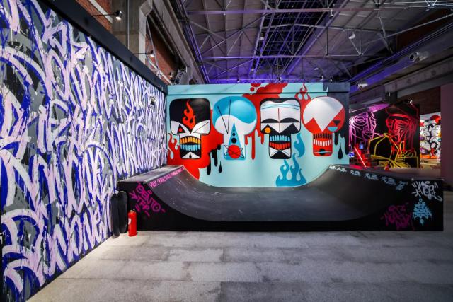 走出地铁站,转身就是一个充满复古风味的滑板公园,历史上第一位在故宫创作的外国艺术家。 JonOne 带来了整面墙的现场喷画,观众可以近距离感受到 JonOne 在抽象风格的作品中,产生了精彩无限的艺术活力。