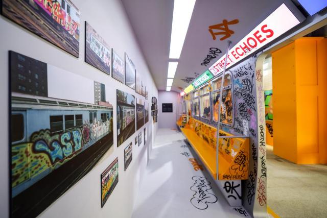 以 DOC TC5 原涂鸦地铁列车是起点,观众在车站等候区和休息墙上随处可见大师的真实故事。这里聚集了大师。 SEEN 早期地铁涂鸦及其在? MOMA PS1 展出的开创性作品,WANE 独特的徽标设计,KEL FIRST 大胆创新字母风格,涂鸦艺术与音乐相结合的涂鸦艺术先锋 Goldie 以及其它顶级艺术家的作品。这类作品就像一列时空列车,承载着涂鸦艺术的历史与文化,带领观众穿梭时空,感受涂鸦文化的独特魅力与生命力。