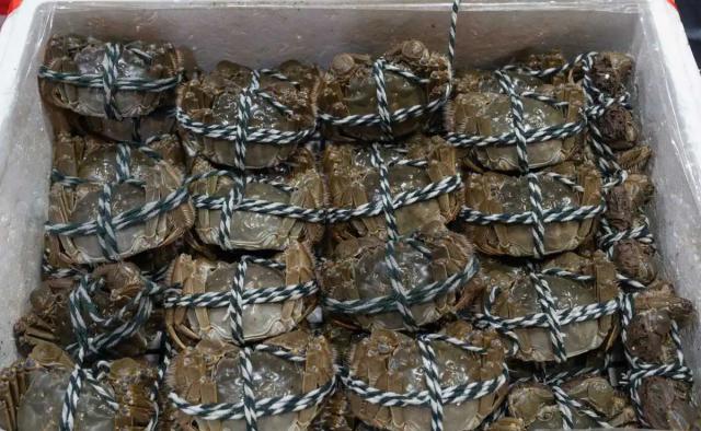 不只是梭子蟹,大闸蟹上市已有半个月,批发价格低于刚上市时。 20% 现在批发市场的规格是上下。 3 两至 3.5 两的公蟹,2 两至 2.5 两只母蟹最畅销。