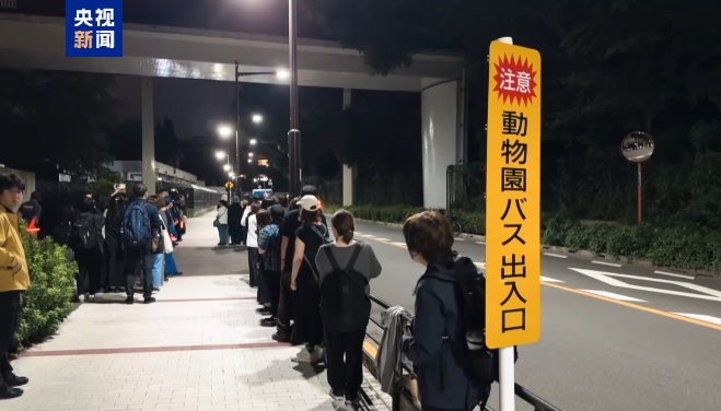 当地时间29日4时左右,日本人民在上野动物园外为大熊猫“比较”和“仙女”送别。