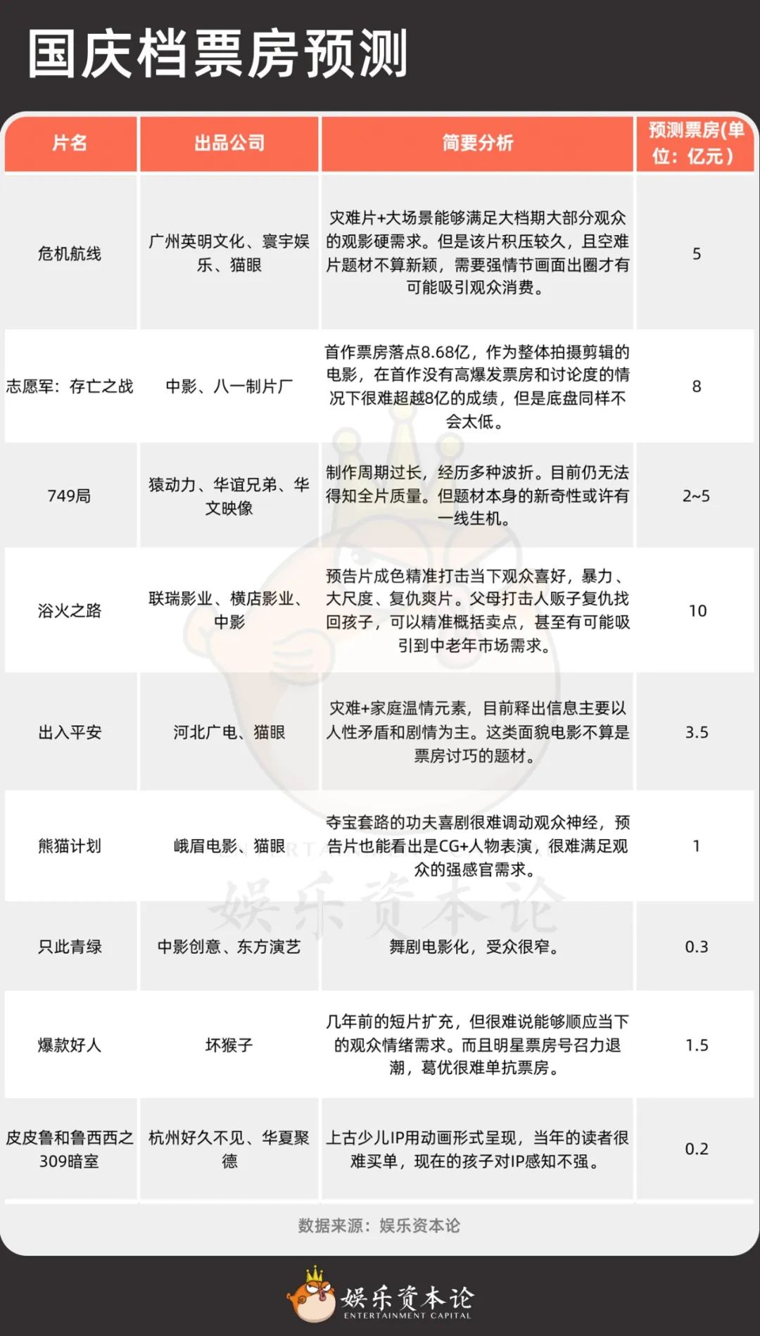 总的来说,娱乐资本理论对今年的国庆档和未来的行业趋势做出了以下判断:
