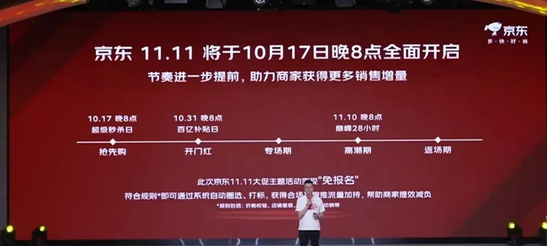今年双11,JD.COM这里最大的区别就是活动周期延长了一周。根据官方公告,JD.COM已于10月17日晚8:00正式拉开大促销和抢购的序幕。