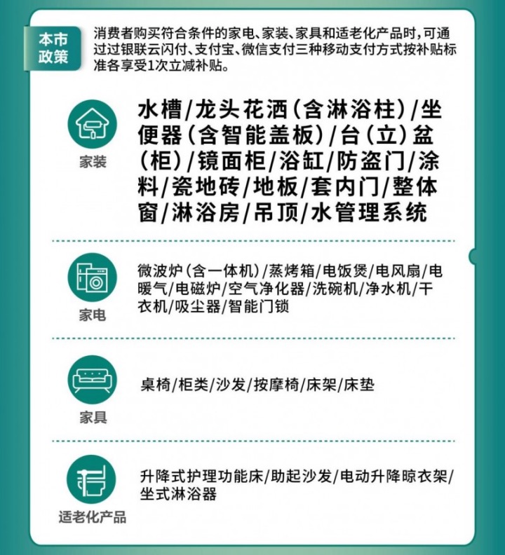 上海市商务委员会等六个部门印发了《上海市加强绿色智能家电消费补贴政策实施办法》。我国家电“新旧置换”八大类补贴政策,按照《实施细则》开始实施。结合上海市52项家电补贴政策,客户最高可享受60项家电补贴优惠。并且统筹规划资金超过40亿元,支持家装、家电、家具、适老化产品等消费品“新旧置换”。这种措施不仅促进了绿色家电和家居用品的普及,而且给消费者带来了实实在在的优惠,有效提高了生活质量。