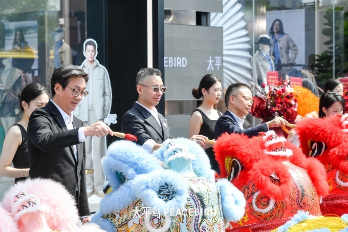 品牌旗舰店开业当天,浙江奥特莱斯广场有限公司董事长金亮、中国服装协会副会长郑念华和品牌高管一起参加开业活动,为品牌创造了一个辉煌的时刻。现场,舞狮与武术(太极)相结合的精彩表演,诠释了传统与现代审美风格的对抗,深刻传达了“刚柔相济”的人文特色。