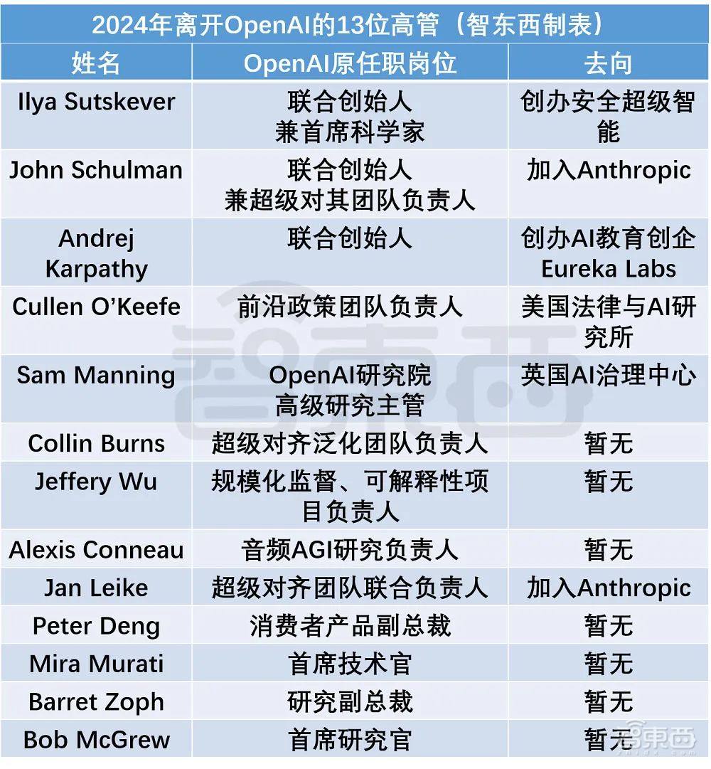 根据智东西的统计,现在已有13名OpenAI高管宣布辞职。