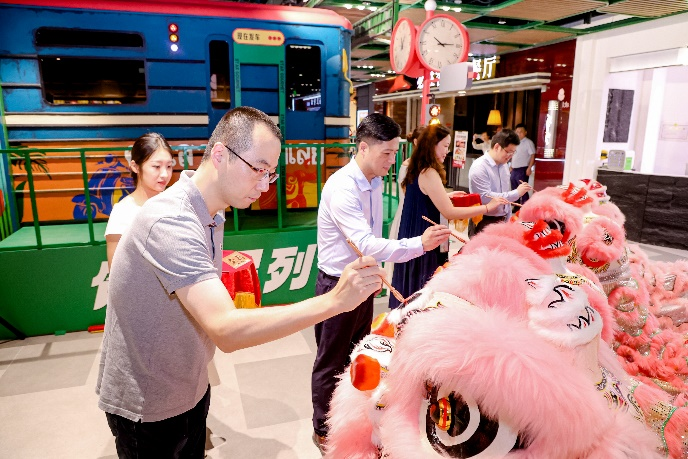 在开业现场,嘉宾们慢慢地走到位于五彩缤纷叶市的火车前,用一声火车鸣笛正式为Star 谷歌拉开了序幕。随后,四头全粉的南狮出现了,舞蹈充满了热情和活力。东南亚特色的娘惹舞也精彩上演,与观众亲密互动,处处洋溢着浓郁的南洋魅力,与Star 主题空间Gourmet相辅相成。