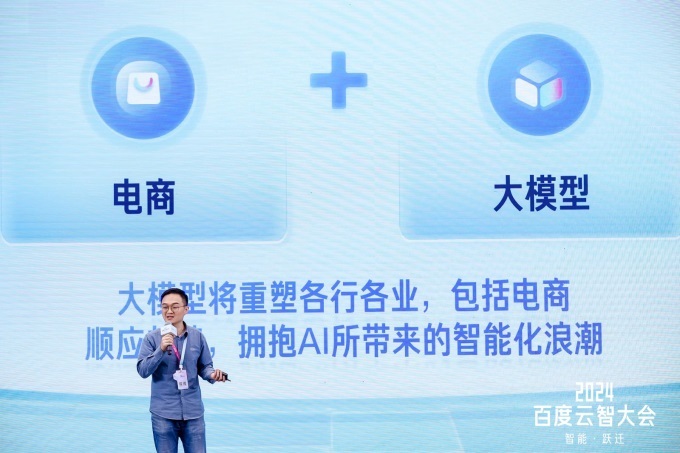 以“爱库存超级助手”为例,百度集团执行副总裁、百度智能云业务集团总裁沈抖展示了电商场景中大模型的应用。