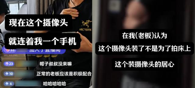 你可以在博主发布的视频中听到老板下面的讲话: " 那是不是有人动了? " , " 如今这个摄像头,连着我的手机。 ( 这儿好像是口误,本来想说路由器之类的) " , " 这台摄像机不是为了拍床而安装的。 " 。