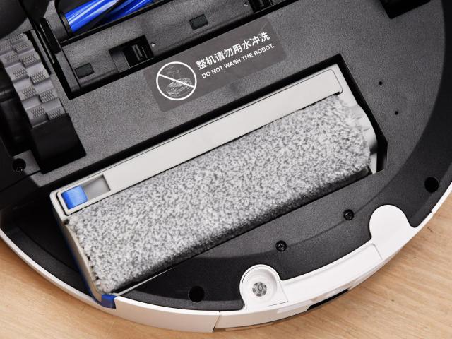 拿到地宝 X8 PRO 之后我们发现这个洗衣机器人最大的区别在于底盘结构。用洗衣机的滚筒代替了常见的双圆盘拖把,真的很清爽。其实这就是 OZMO ROLLER 一部分恒压活水洗地系统。