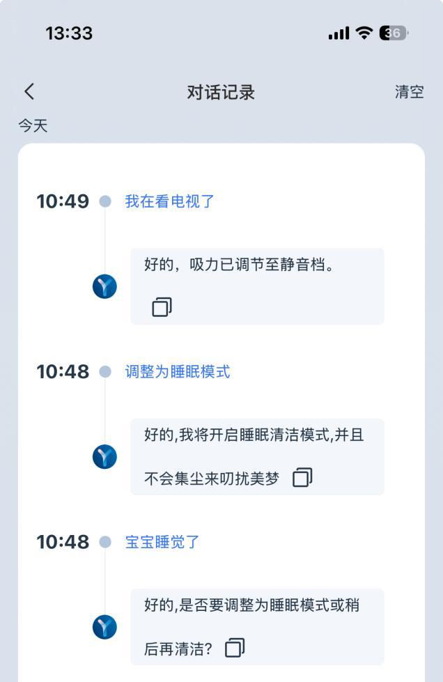 行业内第一个自研大语言模型的扫地机器人,语音温馨对话。