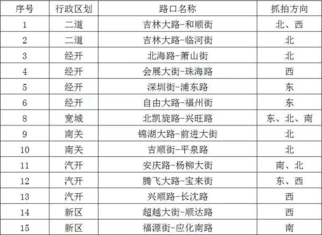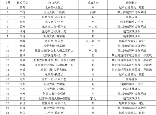 为规范路口交通秩序,提高路口交通能力,防止和减少因交通违法行为造成的道路交通事故。长春市如下 43 十字路口安装了超清电子警察和智能球监控设备。现在向社会宣传,请广大交通参与者了解。