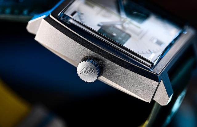 看看侧面,可以发现这款手表把手表移到了左边,颠覆了传统手表的设计。之所以这样设计,是因为第一代摩纳哥手表在诞生时,与著名的Chronomatic相匹配。 Calibre 11运动,这个运动是世界上第一个模块化的自动计时运动(在此之前,都是手动记时)。摩纳哥手表把手表放在左边,说明它内置的自动运动不需要手动链接,充满信心,这也是摩纳哥手表系列的一大经典特色。
