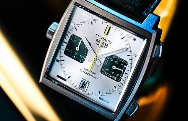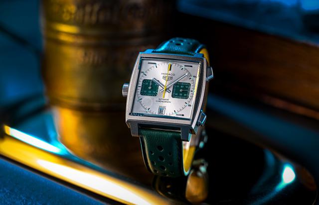 全新摩纳哥“竟速绿”计时码表作为一款专业的跑车计时表,继承了摩纳哥手表的设计精髓。1969 2000年,第一代摩纳哥手表推出时,其几何形状的方形外壳显眼突出。虽然当时方形表壳并不少见,但如何做好防水工作是一个难题,表壳供应商 Piquerez 在设计下,一个具有防水性能的方形表壳诞生了,摩纳哥计时码表是第一个方形防水计时码表。此外,摩纳哥手表的配色设计也值得关注。品牌喜欢在盘面上融入一些合作伙伴的代表色调。在赛场上,引人注目的配色设计特别抢眼,配色新颖独特,不仅辨识度高,而且受到年轻潮流人士的高度关注。