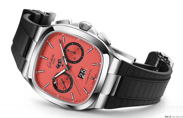 手表评价:这款格拉苏蒂原创的70年代大日历计时手表的盘面其实并不是粉色的。确切地说,它采用了“西瓜红”的配色方案,搭配小电视盒子的形状,看起来非常复古。这个系列的手表实际上是 GO 按照上个世纪诞生的原则 70 年代末期的 Spezichron 以手表为灵感,在融入现代设计的同时保留复古风格。比方说线条比较流畅,表壳弧度比较流畅,组合精致打磨, 40*40 毫米外壳看上去更精致大气。西瓜红色的盘面上覆盖着一些黑色元素,如镀黑时标、指针、副盘外侧、日历背景等。,这些都很好地中和了盘面的华丽感。在机芯方面,小型电视配备了自制电视。 Calibre 37-02 支持飞回计时功能的自动机械机芯,满链后还可以提供 70 小时动储,防水等级 100 米。