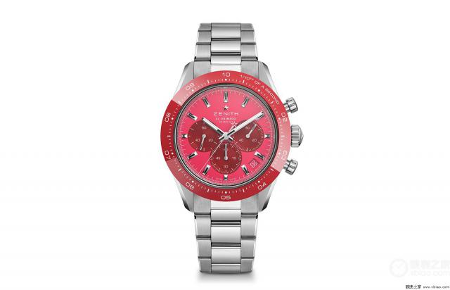 手表评价:这款粉色盘面计时码表是真力今年推出的。 CHRONOMASTER Sport Only Watch 一款孤品手表套装,这套套装 2024 年 5 月 10 日本在日内瓦交易,这个独一无二的好产品最终以 110,000 瑞士法郎的价格已经成功完成。在这套西装中,这款粉色盘面手表特别抢眼。主盘设计为粉色,三个记时副盘颜色略深,与主盘不同。最细节的是,为了呼应盘面的配色,手表还采用了与盘面一致的粉色和红色陶瓷表圈,整体看起来非常和谐。精钢制成的表壳、表链在一定程度上中和了粉色盘面的艳丽,实际上佩戴起来并不太生硬。手表里面装着一块 El Primero 3600 自动化机械机芯,具有自动上链导柱轮,星形败陀,上链后可为手表提供 60 动力储存小时,防水等级 100 米。