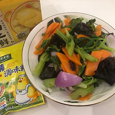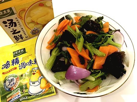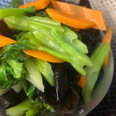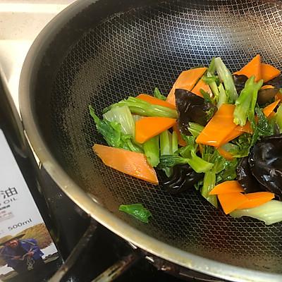 7、上面提到的木耳、芹菜和胡萝卜片都是用冷开水捞出来的。