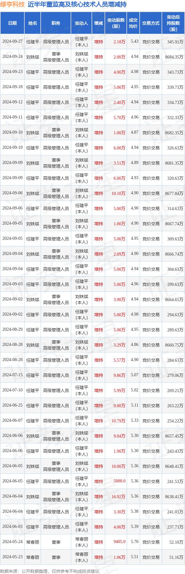 绿亨科技:9月27日,任建平高管增持2.18万股。