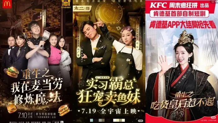 7月10日,肯德基的第一部短剧《重生我在麦当劳修炼魔法》在视频号、小红书、抖音、哔哩哔哩等平台上线,甚至麦当劳的点餐小程序也同步上线。与肯德基不同,这部短剧是关于脱口秀演员童漠男重生成为麦当劳员工的,讲述了霸总是爱上女主角小麦的土气故事。