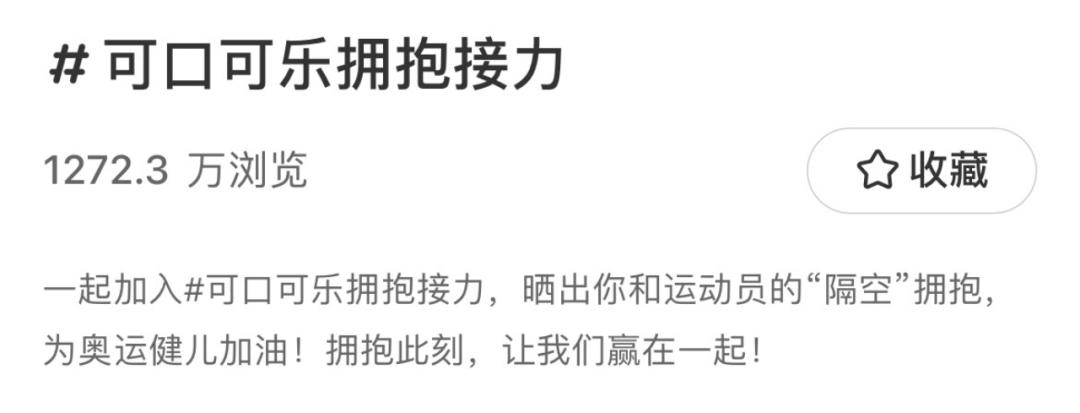 在巴黎奥运会上,跳水运动员全红邈和陈芋汐的两次拥抱令人印象深刻,可口可乐这些宝贵的时刻以海报的形式固定下来,在社交平台上引起了大量的观看和好评。可口可乐聚焦“拥抱时刻”,在微博获得5.2亿阅读量,在抖音获得6500万阅读量。 在小红书播出后,获得了1200万元 次浏览。