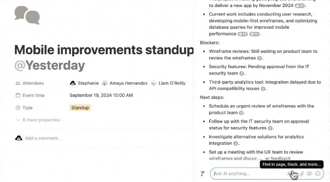 新升级的 Notion AI,对话机器人的方式进一步加强。与以前相比「发号施令」,这次 Notion 希望你能跟着它走「聊天把工作做好了」。