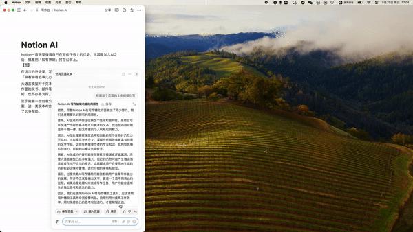 这是自从 Notion 引入 AI 所有人都能感觉到:有点太强了。曾经 AI 无论是文本总结还是继写,产生的内容都会直接出现在页面上,导致用户无法选择性地剪贴。删除和润色是一个新的过程,感觉很普通。