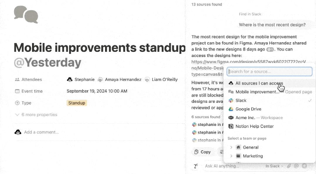 AI 就通过 connectors,深入用户 Slack 在数据库中,搜索相关材料,然后给出答案。它还将被列入记忆库,并成为后续对话的材料。