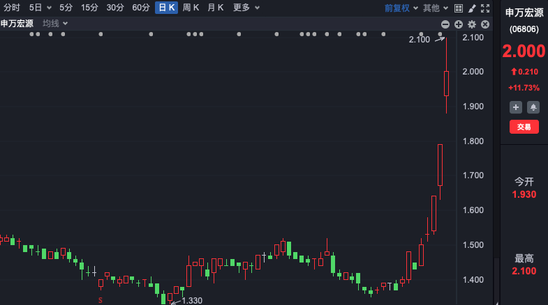 在申万宏源香港盘中,港股券商股也全线暴涨,最高暴涨超过72%,股价创近两年半新高。 中州证券、中国银河、中信证券、第一上海等国泰君安国际也一度上涨超过52%。