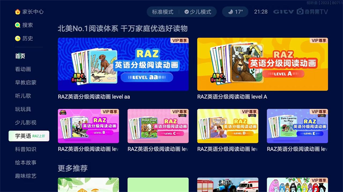 爱奇艺上新RAZ英语分级阅读动画 为会员提供寓教于乐儿童服务。