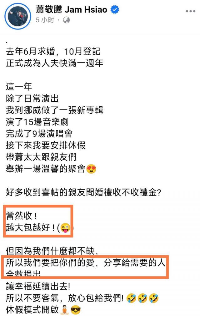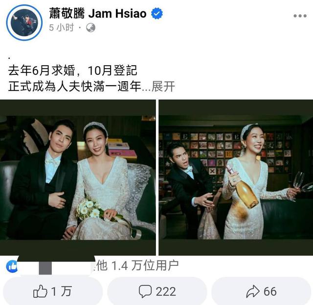 事实上,他们成为法定夫妻已经快一年了,萧敬腾时不时在网上拍照撒狗粮。作为一个护妻狂魔,他最近还在林有慧的生日那天,霸气地包裹着大楼的巨大屏幕送上祝福。