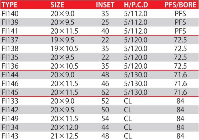 FI-R 的尺寸数据 19 寸到 21 寸,孔位有 5*112/120/130,基本适用于下列车型: