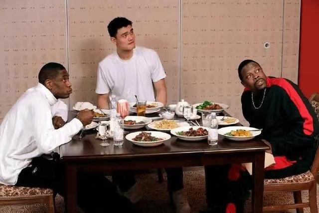下图为 2006 年度三位杰出中锋分别以首发、替补、教练的身份在姚餐厅聚会。