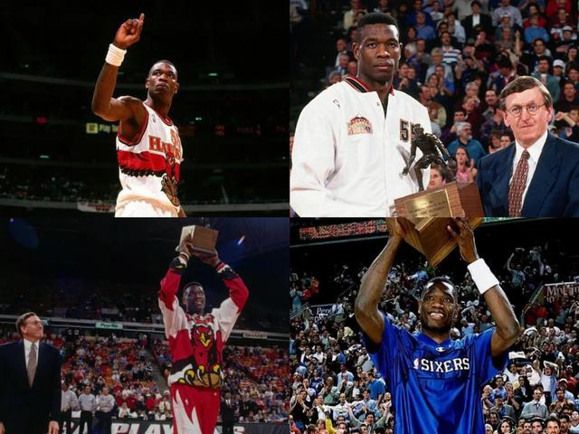 ② 1991 年度被掘金第四顺位选中后,身高 2 米 18、臂展 2 米 25 他很快就成名了,他所依靠的杀手锏就是盖帽。