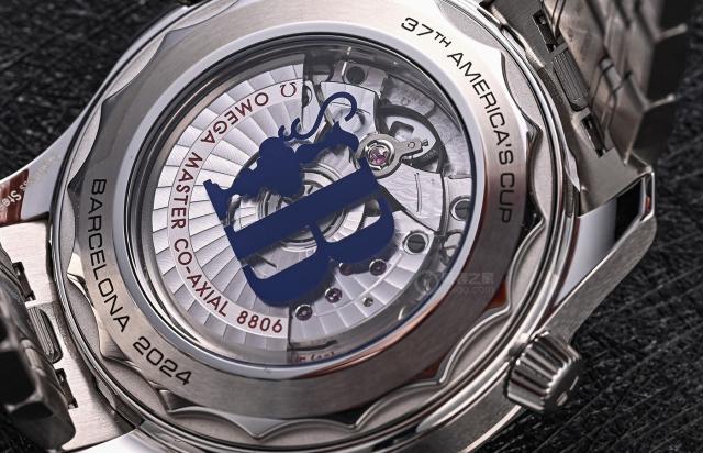 手表在背底盖上,可以看到美洲杯的“银罐” ( Auld Mug ) 冠军奖杯,以及代表第一名。 37 巴塞罗那将举行比赛。 Barcelona 字母" B "形成的图案。而且精刚表背也采用了欧米茄特有的表背。 NAIAD LOCK 技术,能保证后盖每次都能拧到正确的位置,使图案始终保持最正确的效果。在运动方面,手表配有一块欧米茄 8806 至臻天文台机芯,经至臻天文台认证,安装硅游丝,满链可提供。 55 小时动储,不管是精度还是防磁性能等这些性能表现,它都是行业更高的标准。