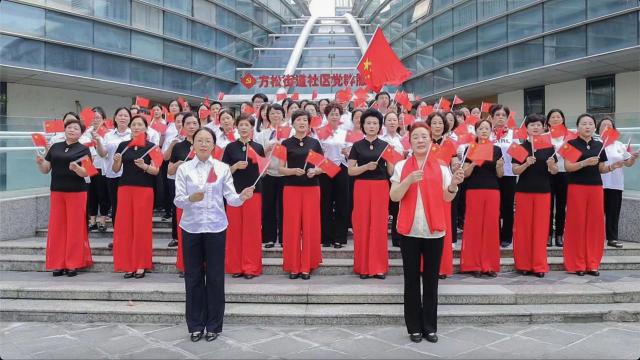 方松街道社区学校创新演绎《歌唱祖国》,为祖国提供深深的祝福。