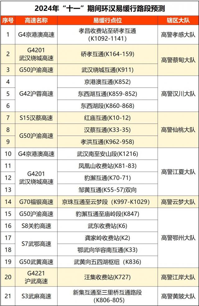 据估计,在假期里,环汉这些道路很容易拥挤: