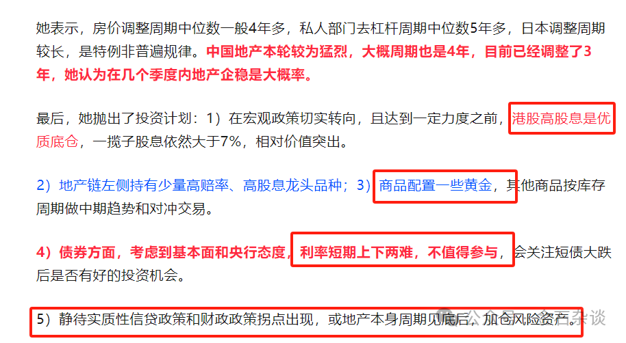 看看她六月份的观点,笔者猜测政策组合拳出来的时候还没来得及加仓,所以才造成了相关产品的持续亏损。