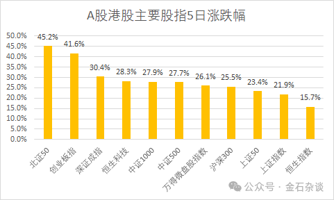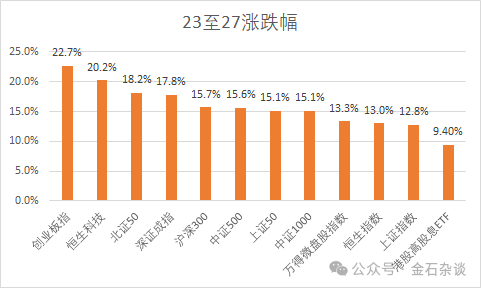 根据金石的统计,23日至27日的一周内,a港股主要股指确实上涨了10%以上,沪深300上涨了15.7%,恒指上涨了13%,而且港股高股息股确实上涨了至少10%。