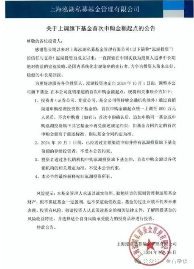 然而,与李蓓形成鲜明对比的是,前夫的哥哥梁文涛做出了一个重大决定:洪湖投资宣布,自10月1日起,如果投资者通过直销渠道购买公司旗下基金,首次购买的起点将统一上调至500万元。