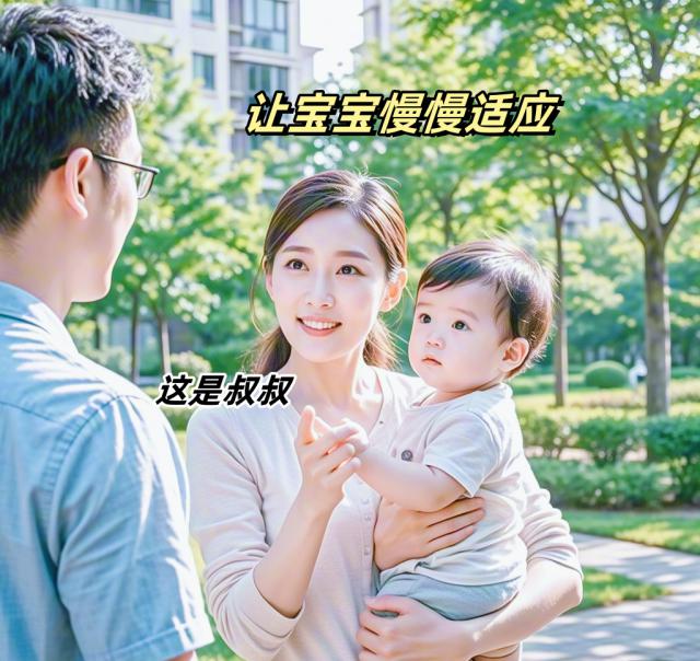 可先让宝宝从远处观察这个人,等宝宝逐渐适应后,再慢慢靠近。